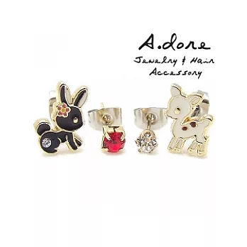 【A.dore】花兔寶寶˙奈良小鹿混搭耳環組(黑系)