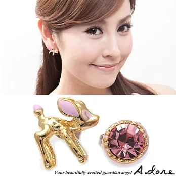 【A.dore】萊茵薔薇˙小鹿花園水晶耳環-甜心粉紅˙耳針式