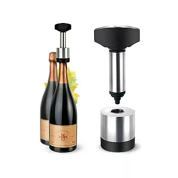 來自德國的經典品牌 AdHoc,源源不絕的創意點子,為您的生活注入活力與創意,給您最貼心的使用經驗。許多的好酒常常因為開瓶後沒喝完,而且沒有妥善保存,後來酒產生質變味道變酸而浪費掉了。此款酒器組有一支抽真空器和一個瓶塞,適用於香檳和氣泡酒。使用時,先將酒瓶塞塞住瓶口,再將抽真空器套入酒瓶塞中,簡單的抽取幾下,便能將酒瓶內的空氣抽掉,並長時間保持在真空狀態,讓您沒喝完的美酒,能長時間保有好品質。抽真空瓶塞組有著簡約優雅的造型,搭配不鏽鋼霧面髮絲的表面處理,散發著簡約時尚的生活氛圍,是您品嚐美酒的好幫手。
