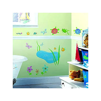 水藍色的小池塘周圍長了許多美麗小花和翠綠水草,仔細一看,有好多小動物在池塘裡快樂的嬉戲。此款美國原廠設計、生產的壁貼強調可重複撕黏使用,不破壞壁面,方便您隨意更換居家氛圍。使用方式簡易,如同貼紙般撕下並平整於牆面即可。適合妝點小孩房、浴室等空間。全組有40張壁貼隨您搭配運用。