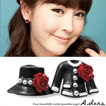 【A.dore】巴黎小香Buy金女孩˙山茶花衣帽耳環-黑˙耳針式