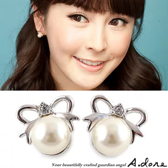 [買書網店]博客來-【A.dore】凡妮莎蝴蝶結˙天然貝珍珠耳環-銀色系˙耳針式哪裡便宜博客來網路書店,博客來網路書局,博客來書店,