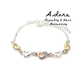 【A.dore】三色玫瑰金˙小愛心串水晶鑽手鍊