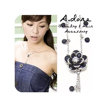 【A.dore】山茶花水晶垂墜Y字項鍊(銀邊黑色系)