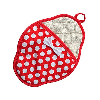 源自美國的餐廚品牌 JessieSteele,設計重心在於體現 1940 年代美國繁榮經濟下追求復古時尚的本質;首重布料的選擇、線條的展現與樣式的創新,讓您兼顧廚藝與烹煮樂趣。將經典復古圓點底布搭配上熱情紅色基調,運用蝴蝶結,創造出可愛俏麗的風格。處理剛出爐的熱騰騰佳餚時,您可當作掀鍋蓋的隔熱手套,也可作為保護桌面的隔熱墊,不用時可吊掛收納不佔空間。以透氣棉質製成,舒適也方便清洗。本商品一入裝。