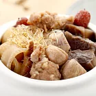 上等干貝、魚皮、魚翅、海參、豬肚、腳筋、大甲芋頭、紹興 酒等30於種食材