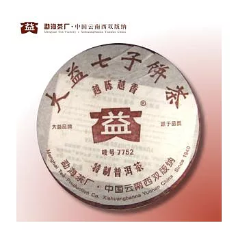 7752熟餅等級高於常規熟茶7572。其採用高級芽頭撒面,3-7青壯級茶菁為?堙A用特定的發酵強度精心拼配而成,湯色紅濃,口感豐富、飽滿,滋味醇滑、陳香顯著及具品飲價值。