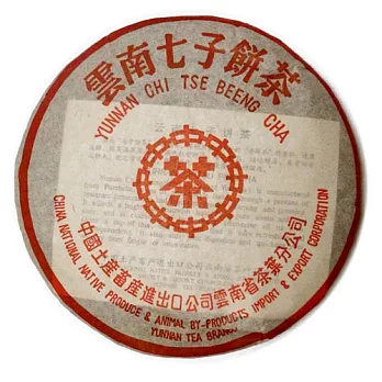 7262雲南普洱熟餅是『猛海茶廠』以1972年的製程,採用六級茶菁配方生產。因為以七片茶餅為一竹筒包裝,而稱之為「雲南七子餅茶」,又稱圓茶。?海茶廠是中茶公司中編號「2」的茶廠,每片「淨重375公克」,外包裝上印有紅色中茶牌商標,有中英文字樣的印刷是屬於中茶牌外銷出口的商品。因?海茶廠隸屬於雲南省茶葉分公司,所以包裝上並無標示「猛海茶廠出口」的字樣。