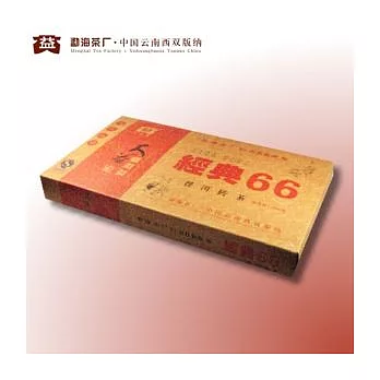 本產品是?海茶廠為了紀念建廠66週年而制的特製品。本品磚形優美、條索勻稱,呈透亮的琥珀色,香氣純正濃郁,滋味淳濃回甘,為地道的「?海味"產品極其有限。採用發酵適度的細嫩芽茶撒面、蓋底,中壯茶葉為?堙A湯色紅濃,陳香純正,滋味醇濃,回甘生津,餘味持久,葉底褐紅泛青柔軟而有彈性乃貯藏醇化之佳品。